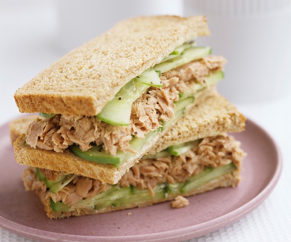 Pão de forma integral + Atum Light + Gotinhas de Limão + Pepino Japonês.