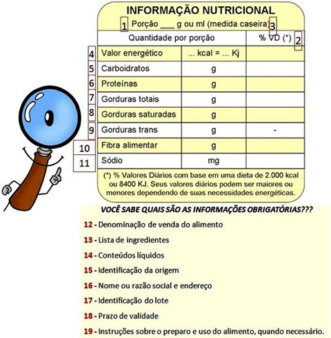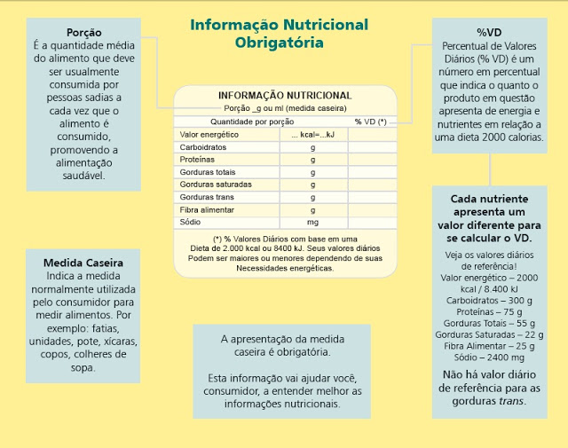 No nosso país,  a Agência Nacional de Vigilância Sanitária (Anvisa) é o órgão que controla os rótulos dos alimentos. No Brasil todo produto precisa apresentar  as informações nutricionais como valor energético, porção, medida caseira e quantidade por porção de carboidratos, proteínas, gorduras, fibras e sódio do alimento.